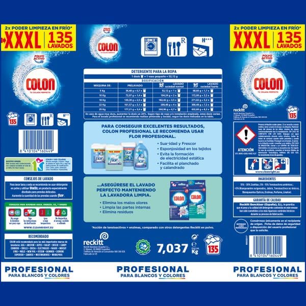 Colon Detergente en Polvo Profesional 135 Lavados